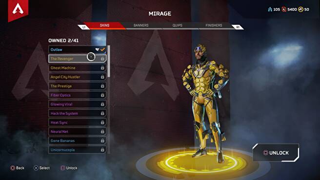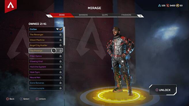 Alternativamente, si no estás buscando pulir Apex Legends para la moneda del juego, puedes pagar hasta 750 Apex Coins para desbloquear Mirage de inmediato. Vas a estar buscando gastar $ 10 para pagar 1,000 Apex Legends, lo que te dará suficiente para desbloquear Mirage.
