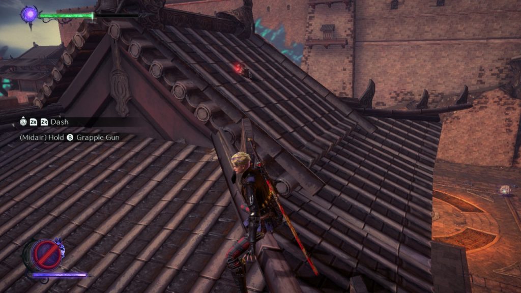 Para atraparlo, corre hacia él, salta dos veces y engancha el gancho en la parte superior del edificio de enfrente. El cuervo dará vueltas alrededor de la columna más a la derecha un par de veces y luego volará. Simplemente llega al edificio antes que el cuervo, párate junto a la columna y salta en el momento adecuado. Es muy fácil de hacer, y debería poder agarrarlo en su primer o segundo intento.