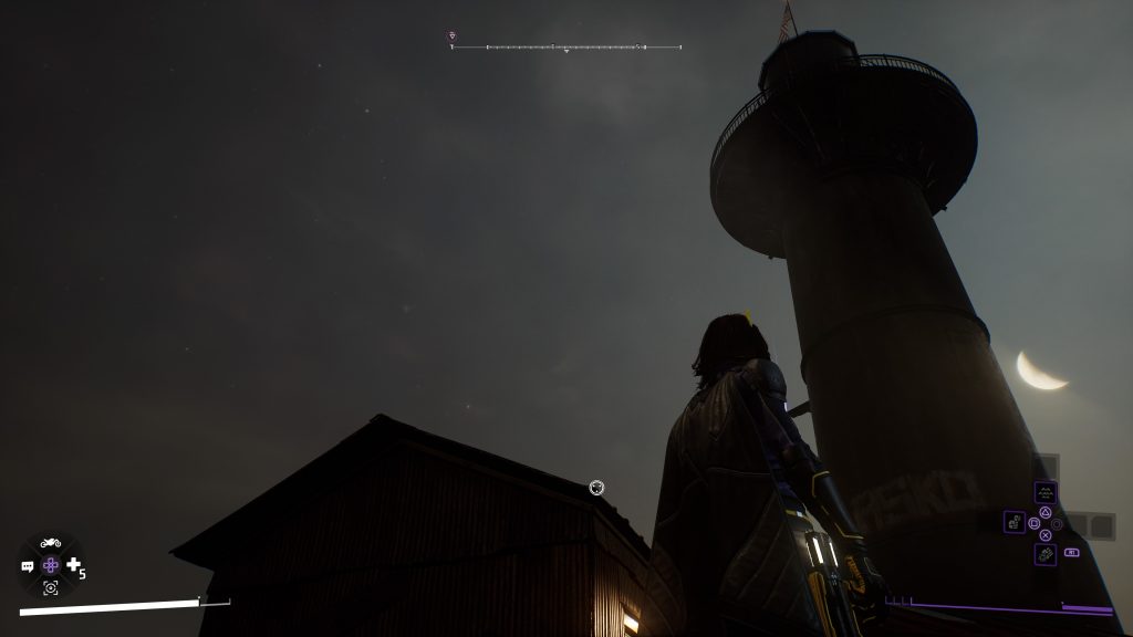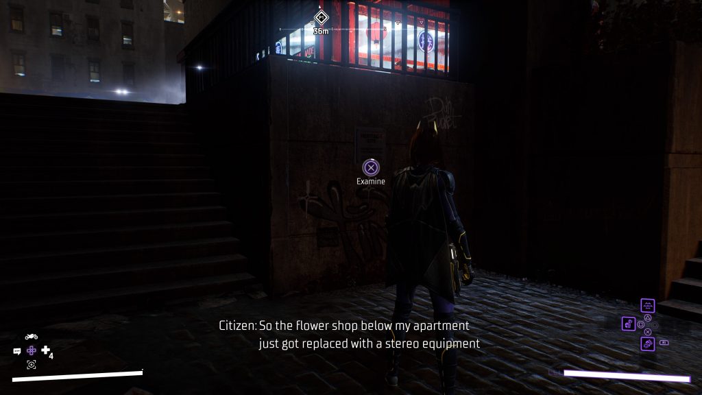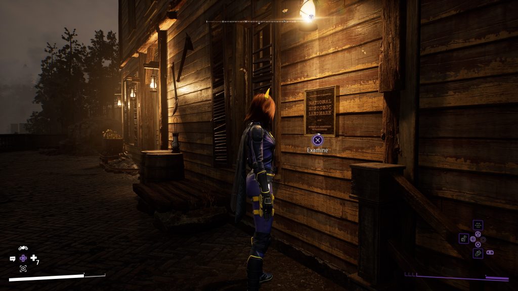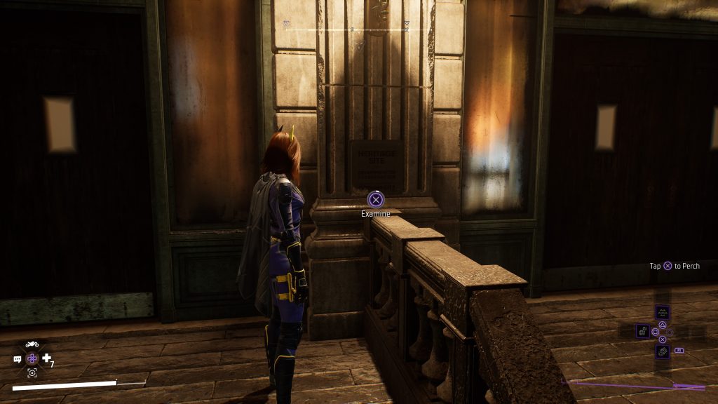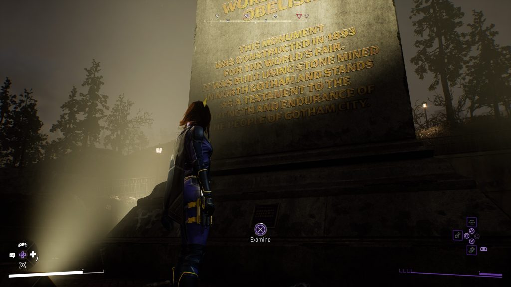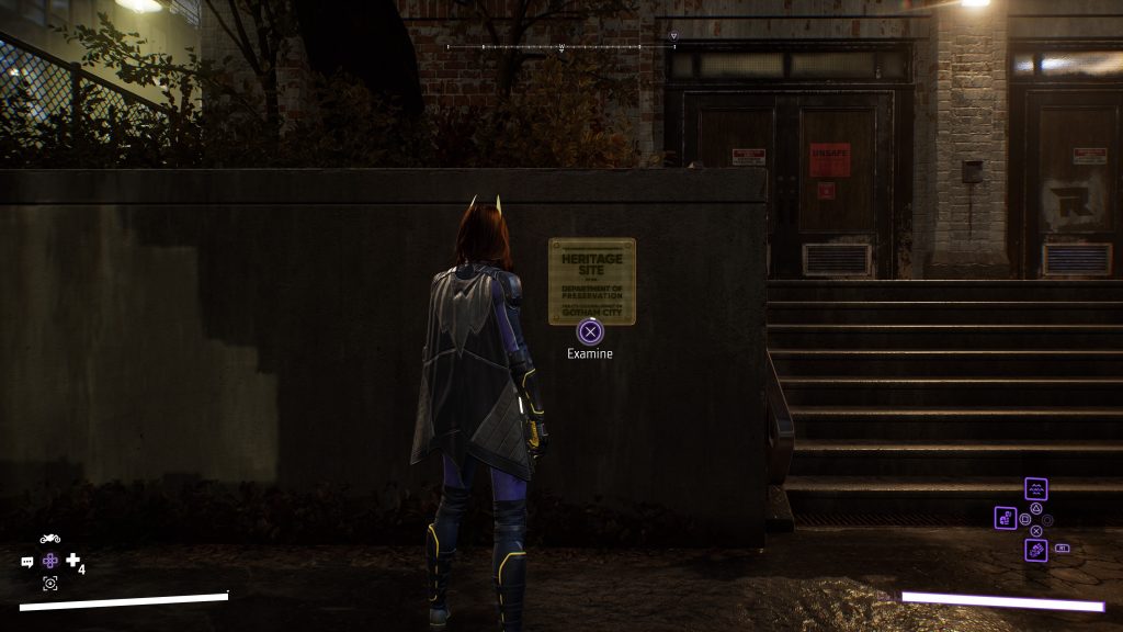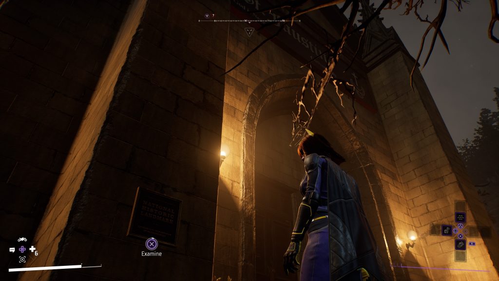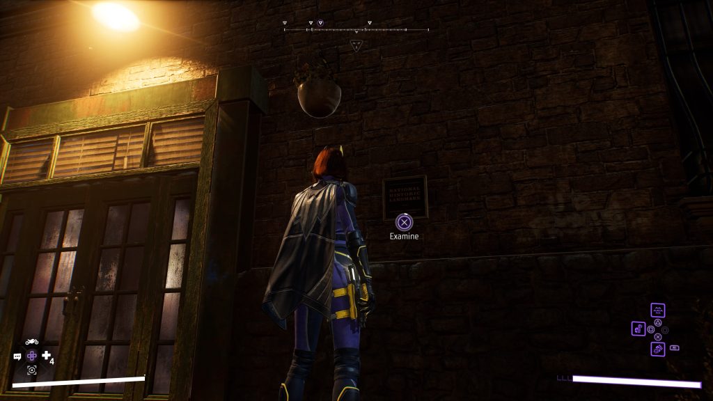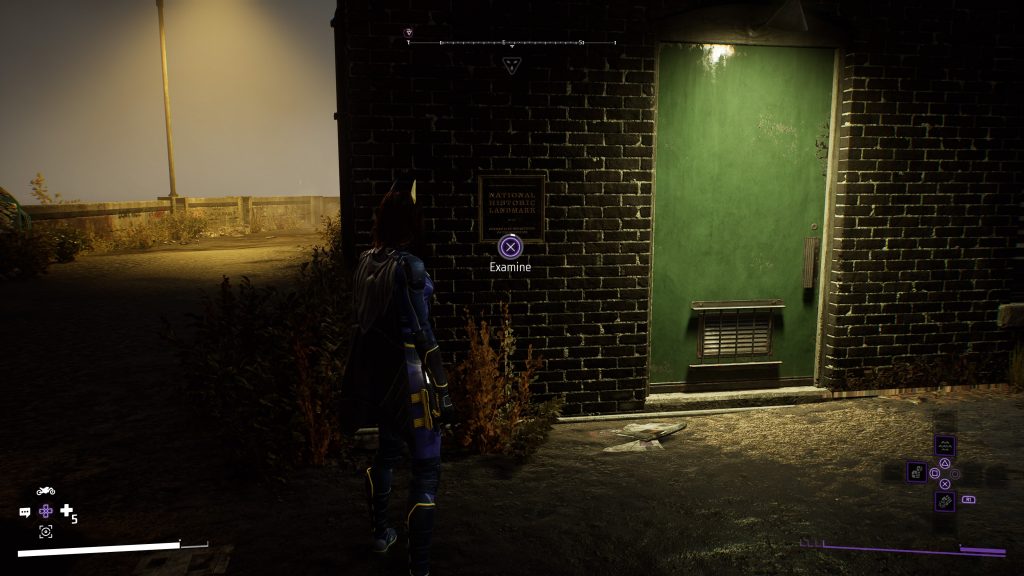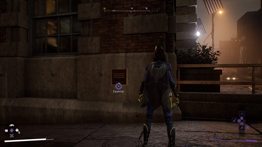 Este punto de referencia está ubicado directamente al norte de la «A» en el texto que dice «Gotham Heights» en el mapa. Interactúe con la placa al costado de las escaleras en el área para registrarlo.