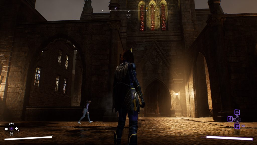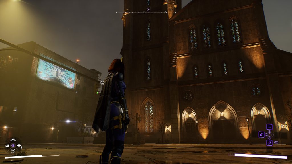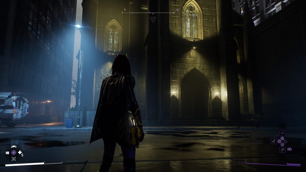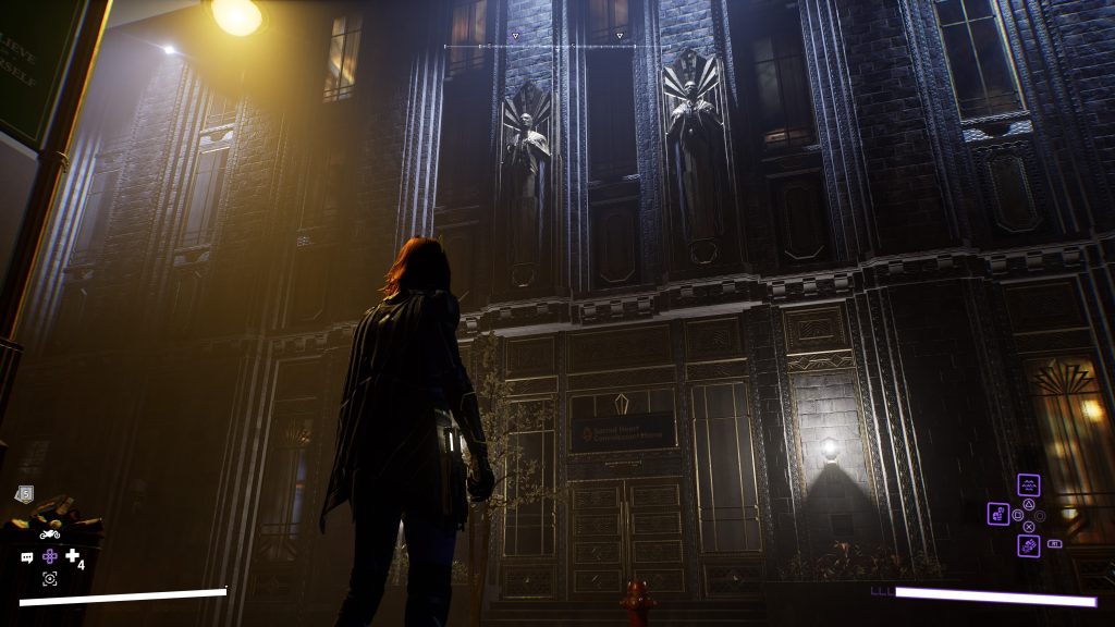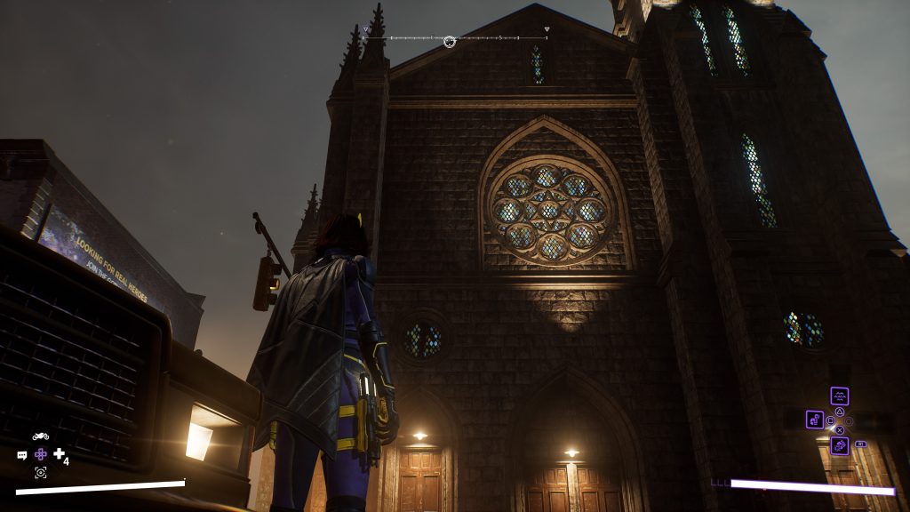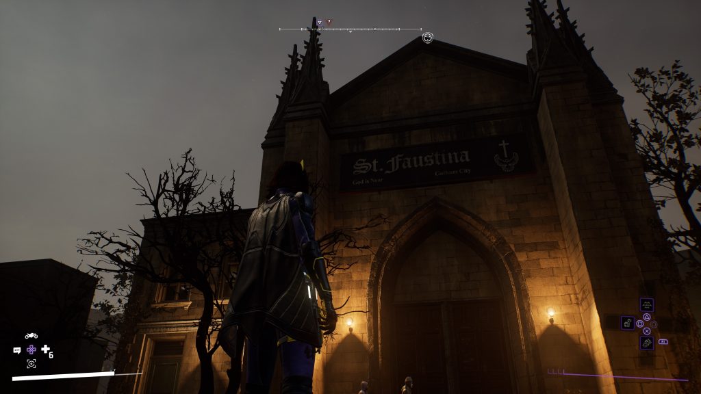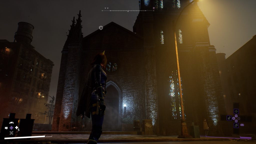El hito final en caballeros de gotham es…otra iglesia, miren eso. Si bien la catedral (ubicada en la esquina noroeste del distrito) es grandiosa y un poco gigante, su placa está ubicada en su lado oeste en un edificio lateral más pequeño.