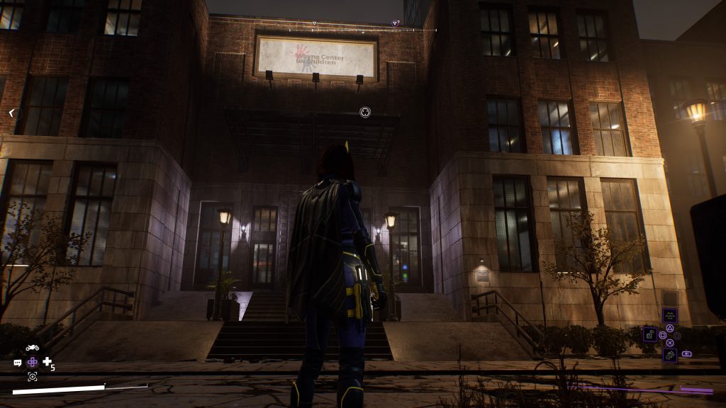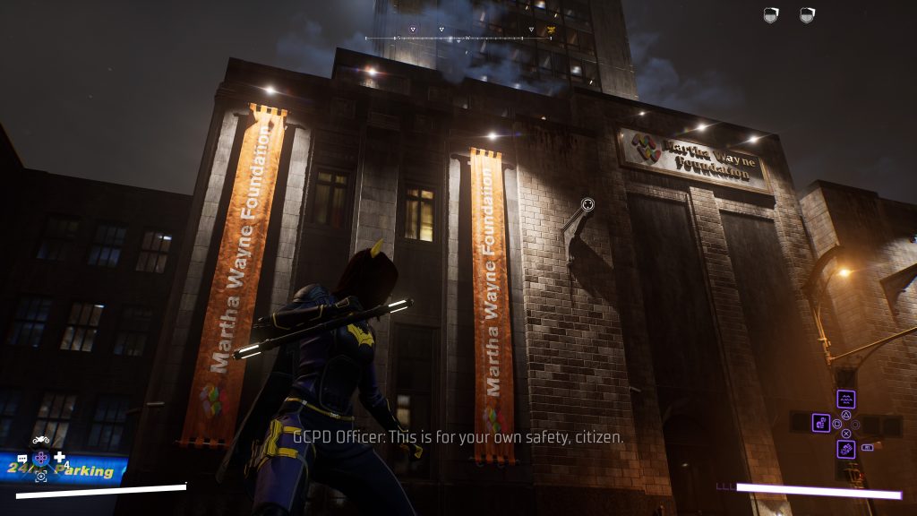 Encontrarás el edificio de la Fundación Martha Wayne al suroeste de la primera «O» en el texto que dice «Old Gotham» en el mapa. La placa está a la izquierda de las puertas de entrada del edificio.