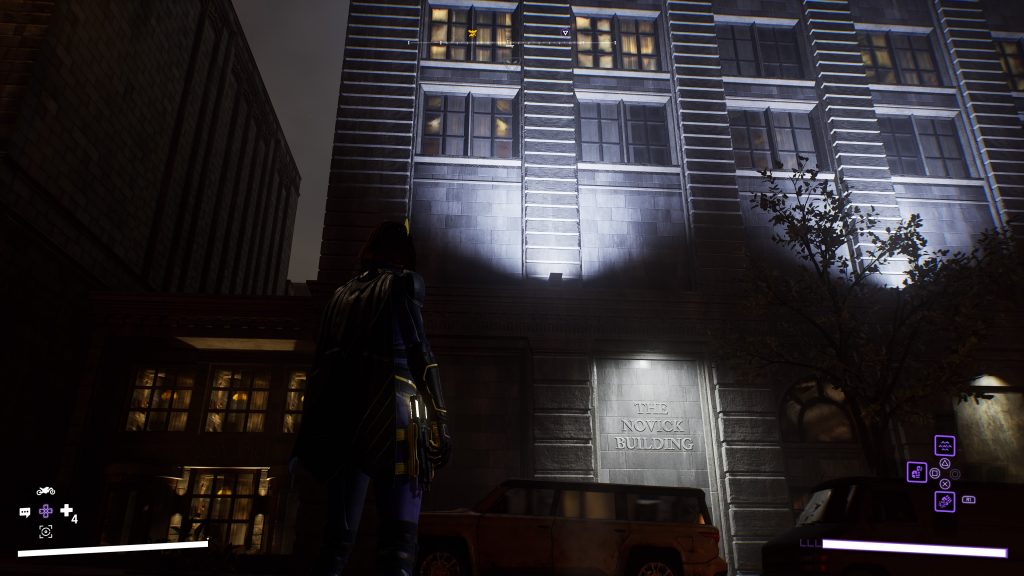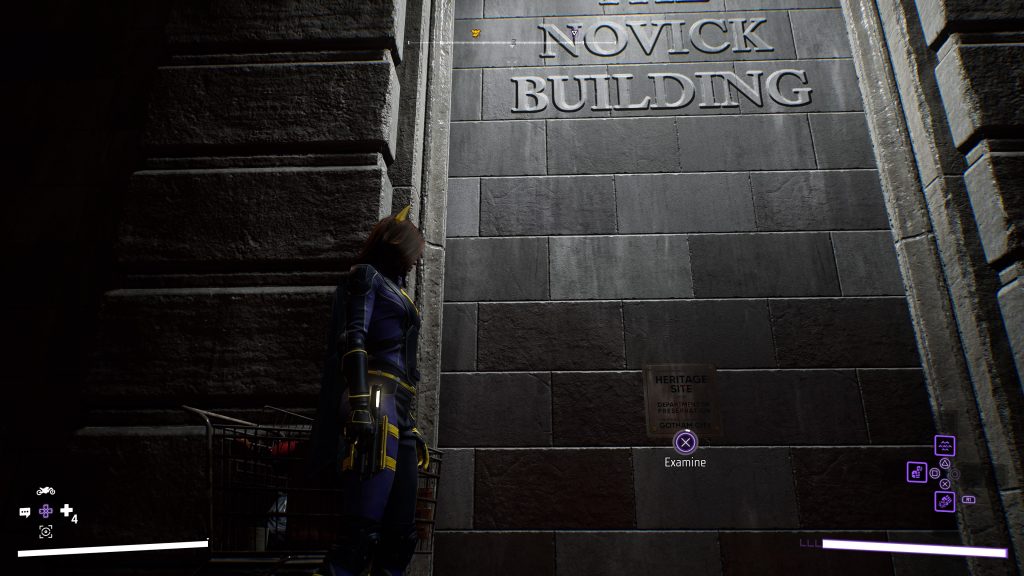 El edificio Novick se puede encontrar directamente sobre la «M» en el texto que dice «Old Gotham» en el mapa. La placa está ubicada en el lado oeste del edificio.