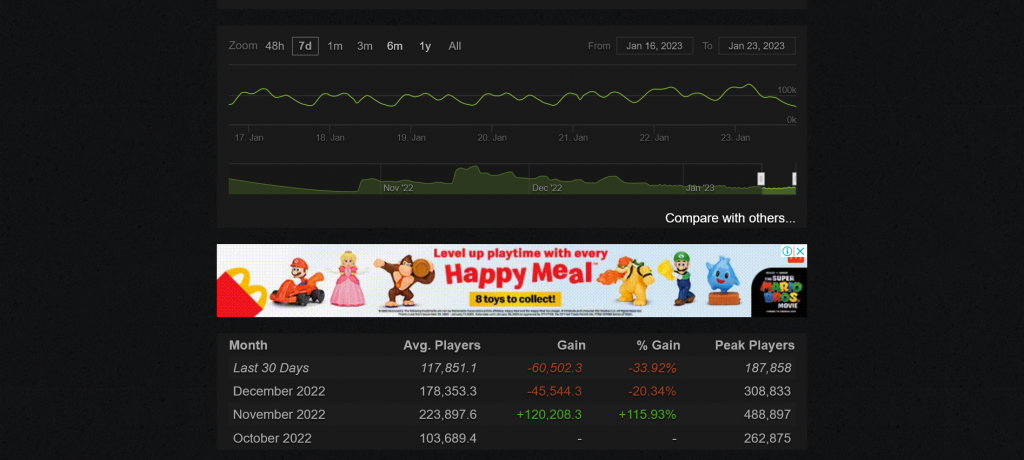 También vale la pena señalar que Call of Duty Zona de guerra 2.0El mes con mejor rendimiento de Steam también fue un mes histórico para la plataforma. Vieron la mayor cantidad de jugadores simultáneos que han tenido hasta ahora en noviembre de 2022.