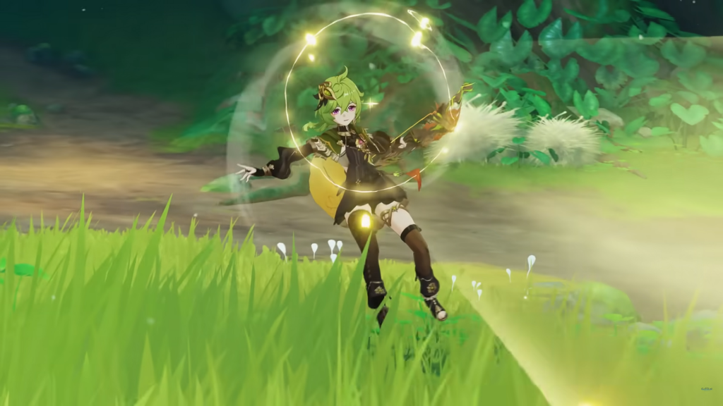 44 | Recarga de energía | Después de desencadenar una reacción relacionada con Dendro, aparecerá una hoja que, cuando se recolecte, le dará al personaje 60 puntos adicionales en dominio elemental. Este efecto dura doce segundos y solo puede activarse cada 20 segundos. |
