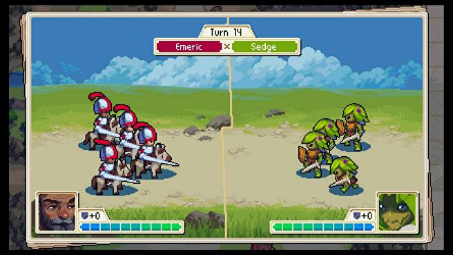 Wargroove es un juego de estrategia de anime de arriba hacia abajo, de 16 bits, y es muy maravilloso. Te turnarás para mover tus tropas por el campo de batalla, averiguando dónde moverte mejor para combatir a las tropas enemigas. La batalla a menudo termina cuando un Comandante (el líder de élite de un ejército) es derrotado, o si un lado no tiene más unidades de tropas restantes.