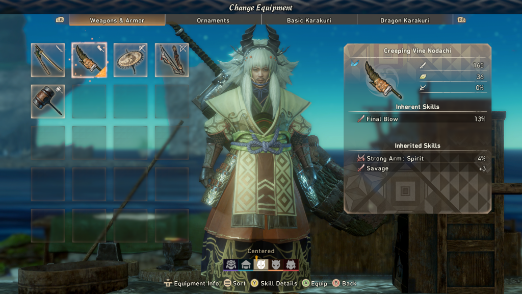 Una vez que las armas están desbloqueadas, puedes obtenerlas en cualquier fragua. Si bien puede parecer que necesitarás a Natsume para que te fabrique nuevas armas como lo hace en el primer capítulo del juego, se queda en Minato después de que la lleves allí, por lo que en realidad no es necesaria para fabricar nuevas armas. En su lugar, simplemente crea una forja usando dragon karakuri e interactúa con ella. Aquí, podrás hacer nuevas armas y armaduras y cambiar el arma que estás usando actualmente por otra cosa.