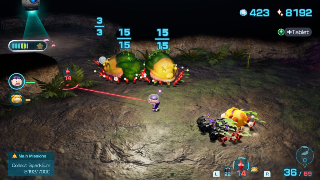 El único punto débil que tiene el Emperador Bulblax es su rostro, lo que significa que tendrás que lanzar hordas de Pikmin directamente a la boca del león. Por supuesto, tirará a tus Pikmin después de un tiempo, así que prepárate para repetir tu ataque varias veces. Si usa Ultra Spice, acelerará la batalla hasta su feliz conclusión.